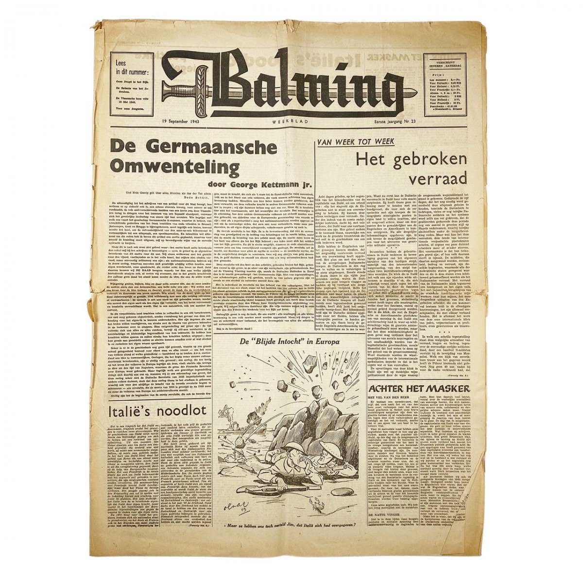 Original WWII Belgian collaboration newspaper 'Balming'