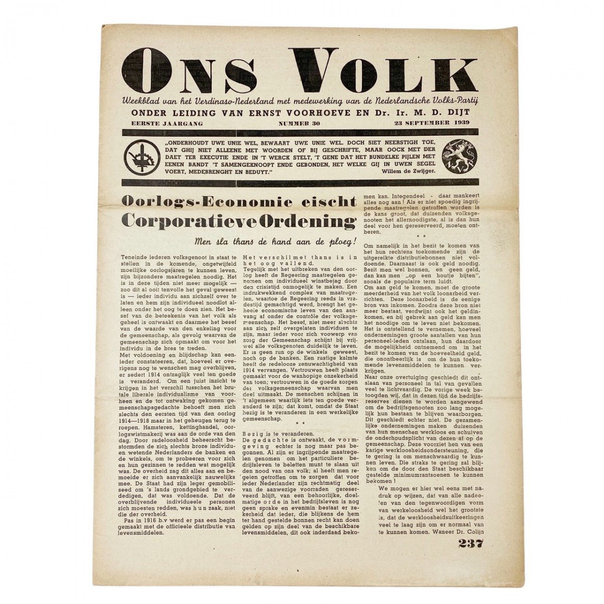 Originele WWII Nederlandse collaboratie krant – Ons Volk 'Verdinaso Nederland'